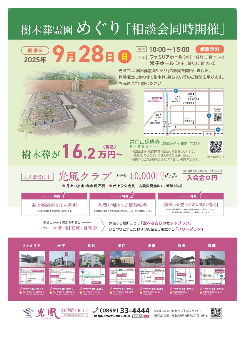 樹木葬霊園めぐり 「相談会同時開催」のお知らせ(令和7年9月28日(日))