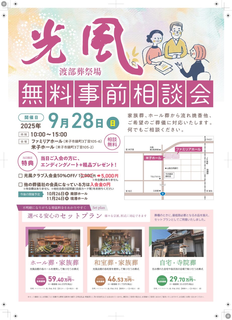 また、光風クラブへご入会いただく場合は、入会金が通常10,000円ですが、相談会価格として半額の5,000円で承ります。
