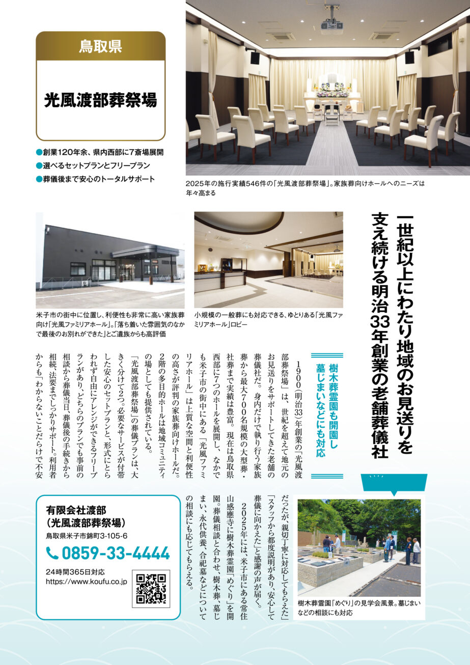記事内では、明治33年の創業以来、一世紀以上にわたり鳥取県西部地域の皆様の「お見送り」を